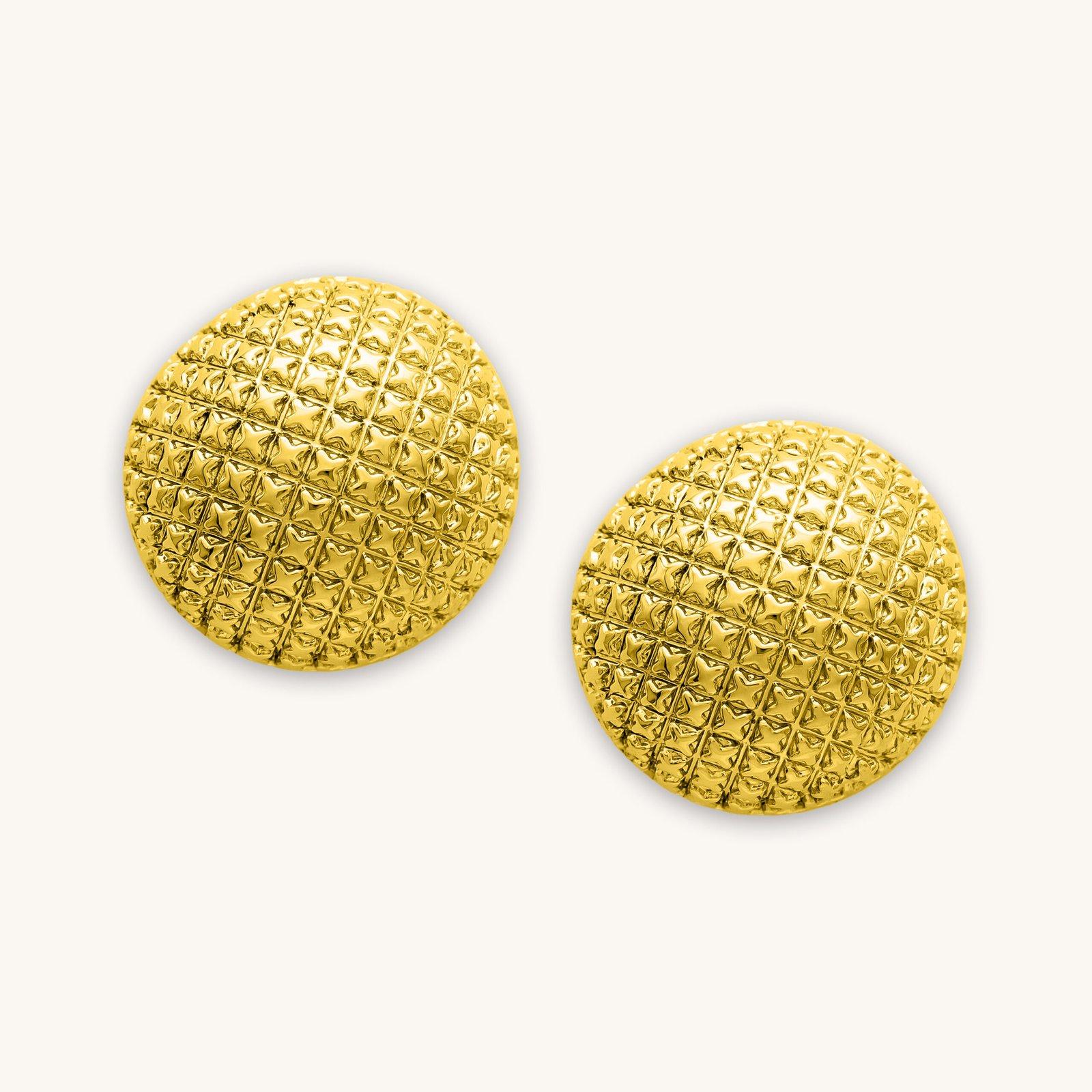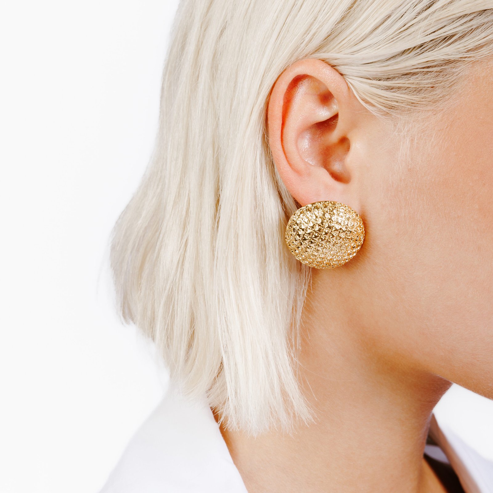 Αναβαθμίστε το στυλ σας με τα χρυσά σκουλαρίκια με αναγλυφο μοτίβο της συλλογής μας, τα οποία αποτελούν ένα κομψό και διαχρονικό κομμάτι που προσδίδει στυλ σε κάθε εμφάνιση. Κατασκευασμένο από υψηλής ποιότητας κράμα σε χρυσούς τόνους, τα σκουλαρίκια αυτά έχουν μια στιβαρή και ανθεκτική κατασκευή που εξασφαλίζει μακροχρόνια χρήση και διατήρηση της λαμπερής του εμφάνισης. Είναι η ιδανική επιλογή για όσους αναζητούν ένα εκλεπτυσμένο και μοντέρνο αξεσουάρ που θα προσθέσει λάμψη στην εμφάνισή τους.