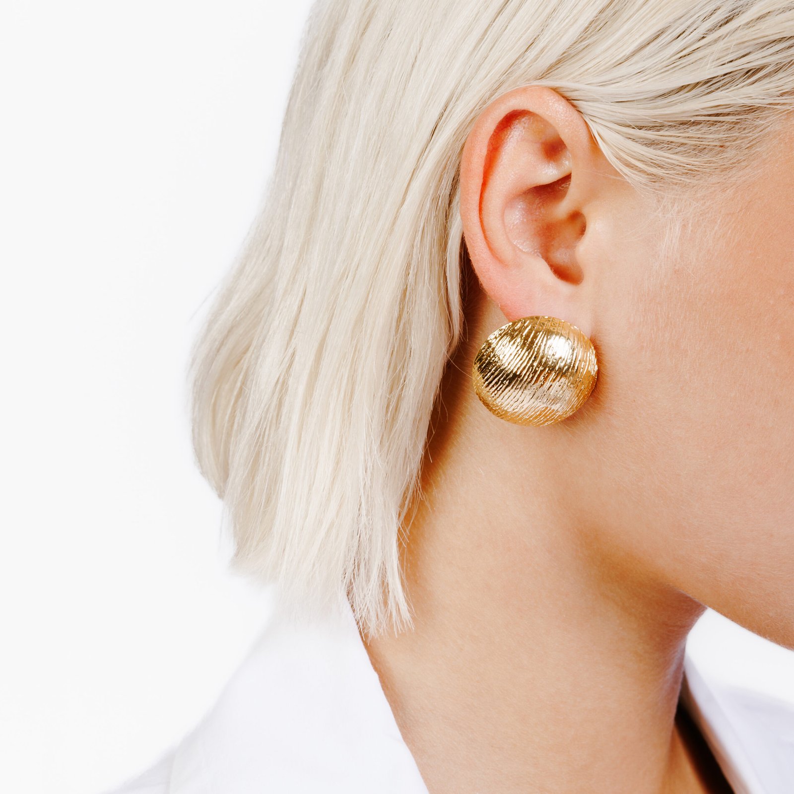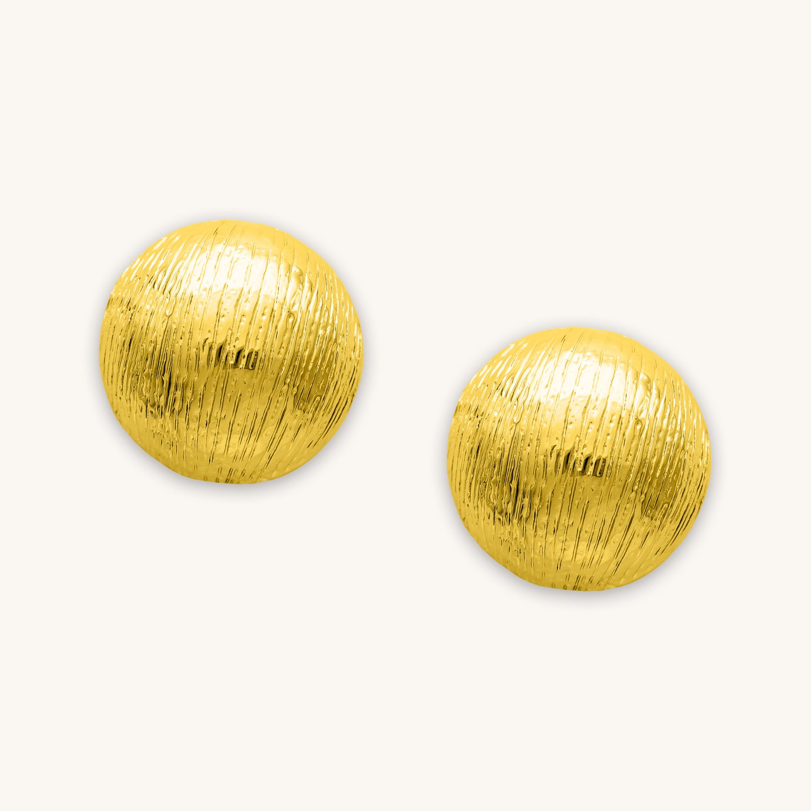 Αναβαθμίστε το στυλ σας με τα εντυπωσιακά χρυσά σκουλαρίκια με αναγλυφο μοτίβο της συλλογής μας, τα οποία αποτελούν ένα κομψό και διαχρονικό κομμάτι που προσδίδει στυλ σε κάθε εμφάνιση. Το σφαιρικό σχήμα των σκουλαρικιών προσφέρει μία κλασική αλλά και μοντέρνα αισθητική. Η καθαρή, καμπύλη επιφάνεια τους κάνει ιδανικά για κάθε τύπο προσώπου και στυλ, προσδίδοντας μία διακριτική αλλά εντυπωσιακή πινελιά.