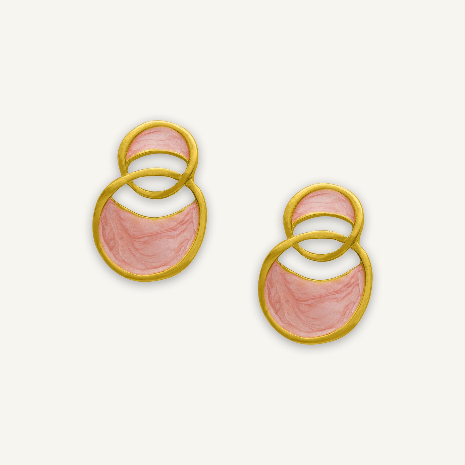 Αναβαθμίστε το στυλ σας με τα εντυπωσιακά χρυσά σκουλαρίκια της συλλογής μας, τα οποία προσφέρουν μια αίσθηση πολυτέλειας και εκλεπτυσμένου στυλ, ιδανικά για όσες αναζητούν την κλασική κομψότητα με μια μοντέρνα πινελιά. Το σχέδιο του σκουλαρικιού αποτελείται από δύο κύκλους που συνδέονται μεταξύ τους δημιουργώντας ένα ιδιαίτερο αποτέλεσμα. Ο μεγαλύτερος κύκλος φιλοξενεί ένα κομμάτι από nude σμάλτο, το οποίο έχει μια ελαφριά μαρμάρινη υφή, προσφέροντας ένα ιδιαίτερο οπτικό ενδιαφέρον. Το ροζ σμάλτο είναι προσεκτικά τοποθετημένο και ενσωματωμένο μέσα στον χρυσό, δημιουργώντας μια αρμονική αντίθεση.